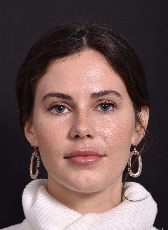 Mujer de 28 años tratada con aumento de labios utilizando relleno dérmico de ácido hialurónico. La Dra. Fishman trató los labios de esta paciente con 1 ml de relleno dérmico. La paciente se muestra 2 semanas después del tratamiento. (ANTES, vista frontal, neutral)
