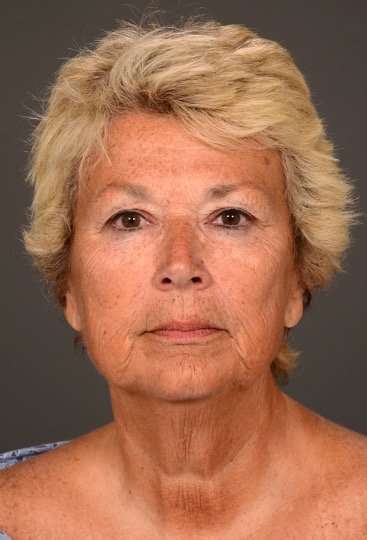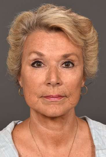 Esta mujer de 67 años quería verse renovada y menos cansada. La Cirujana Plástica Facial Dra. Inessa Fishman la trató con una blefaroplastia superior y un levantamiento temporal o exterior de cejas para ayudar a abrir sus ojos. La paciente también se sometió a un estiramiento facial y de cuello para rejuvenecer la parte inferior de su rostro.