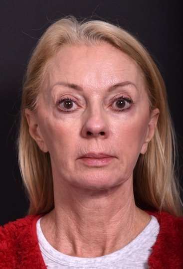 This 67-year-old woman wanted facial rejuvenation. She had had a previous surgical facial procedure several years ago, and felt it was “time to re-lift.” Facial plastic surgeon Dr. Inessa Fishman treated her with a revision face and neck lift to smooth her jawline and neck; facial fat grafting to add volume to her cheeks; and a surgical upper lip lift to rejuvenate the upper lip, which elongates with age. The patient is shown 6 months after treatment.