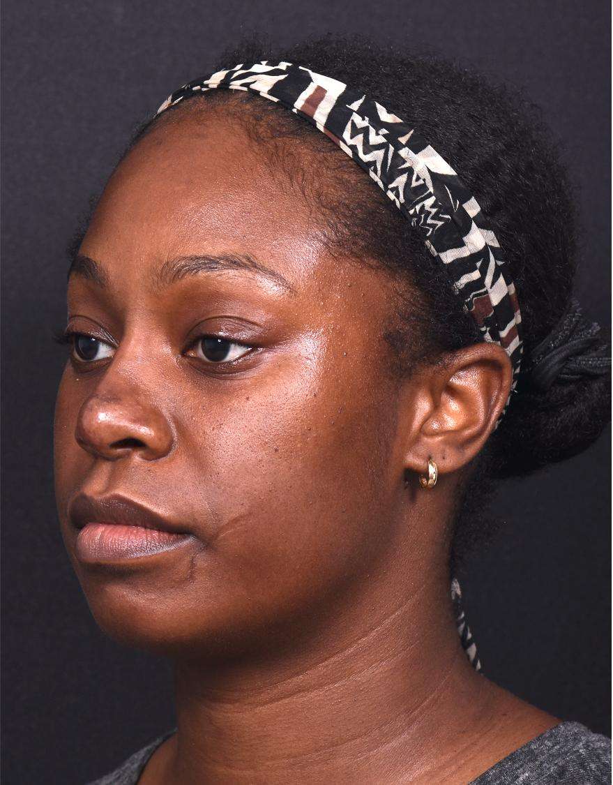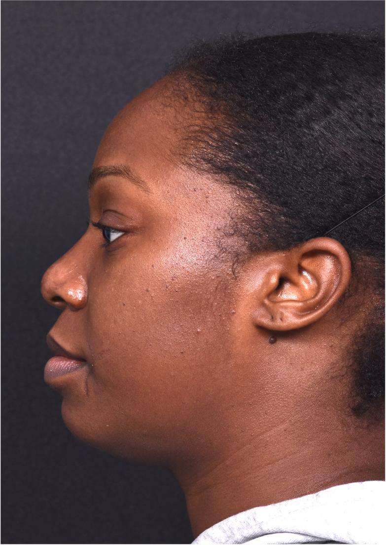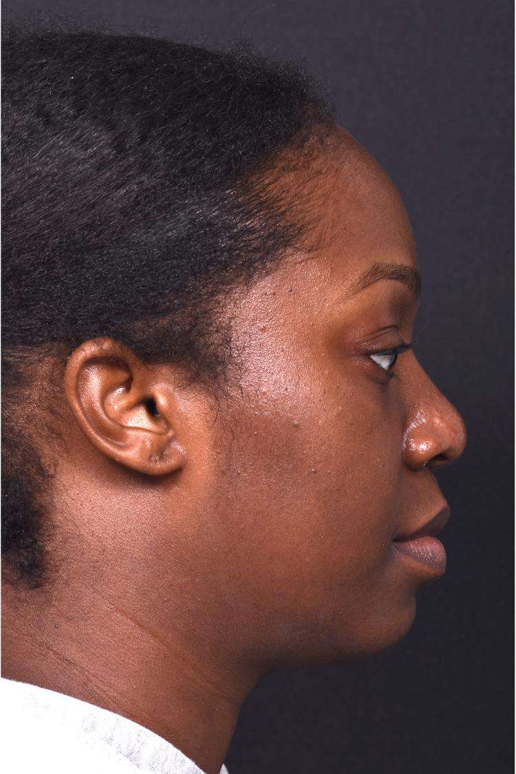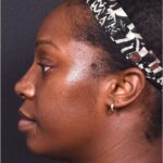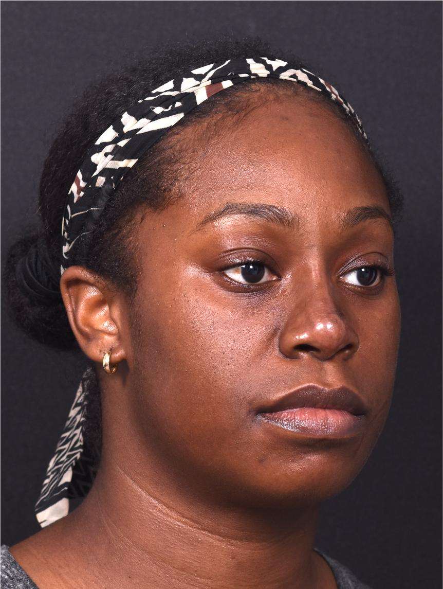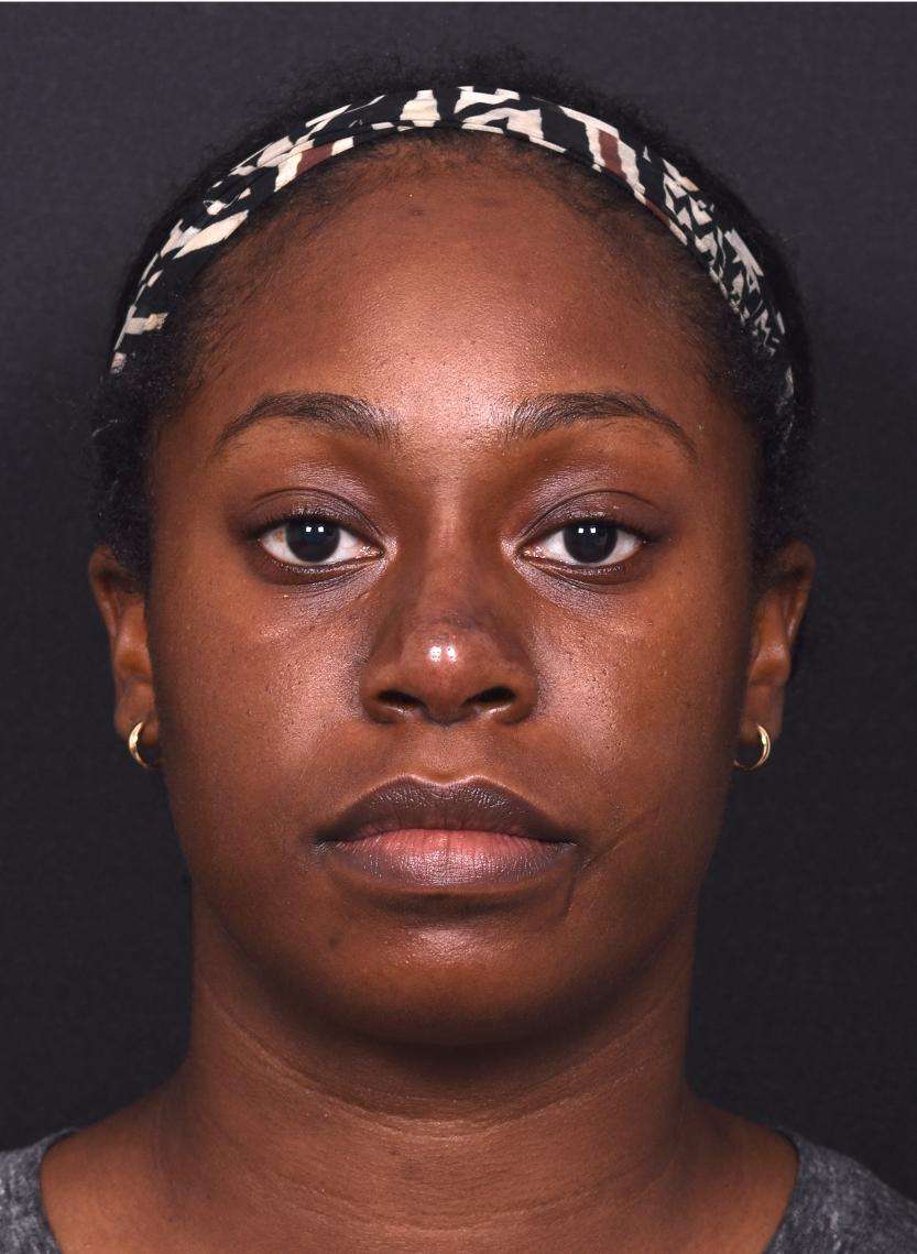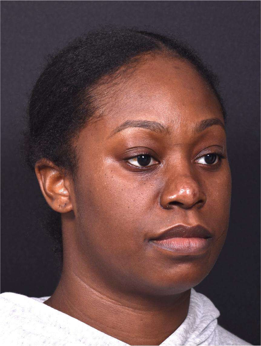 This 29-year-old woman wanted to improve the definition of her nose without surgery. Facial Plastic Surgeon Dr. Inessa Fishman treated her with a non-surgical or “liquid” rhinoplasty, using dermal fillers to add height to her nasal bridge and refine the nasal tip. She is shown immediately after treatment.