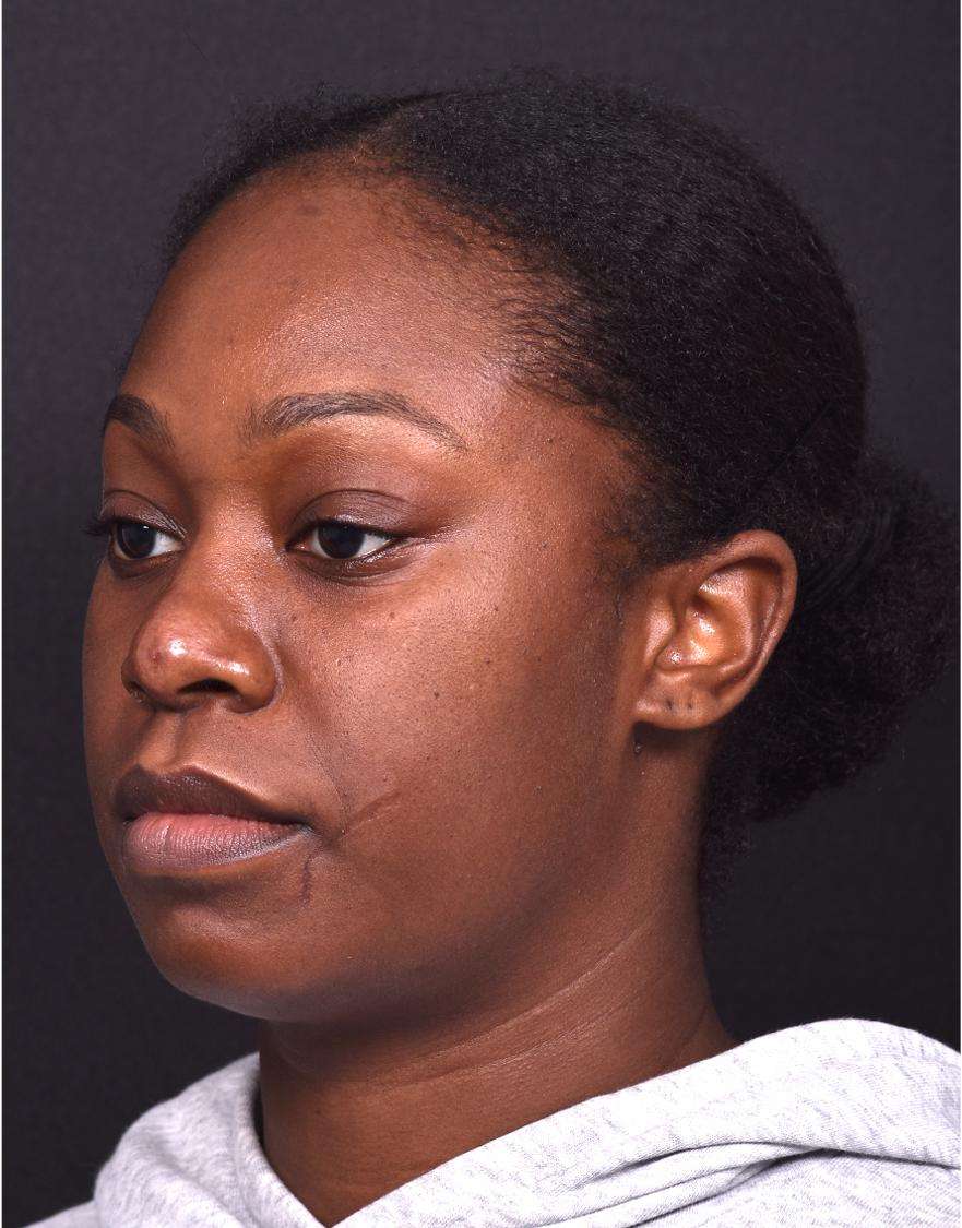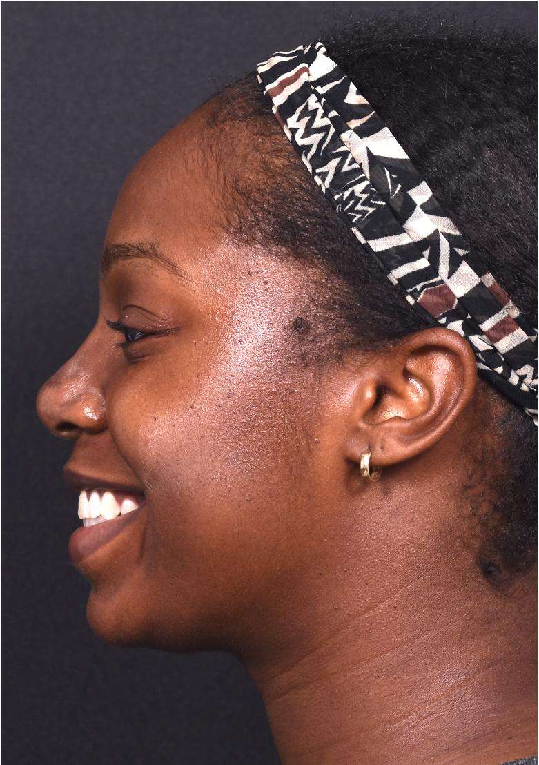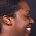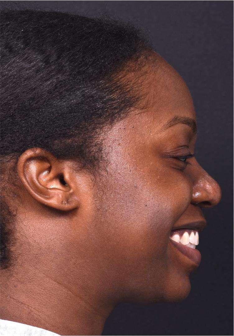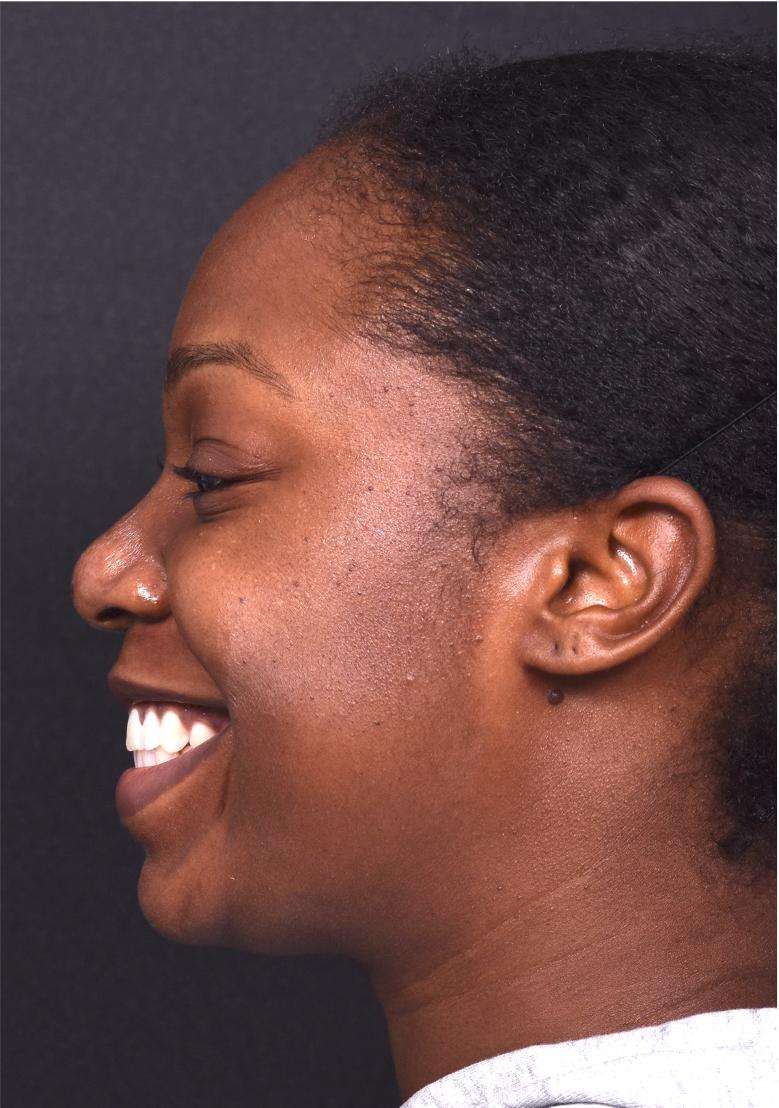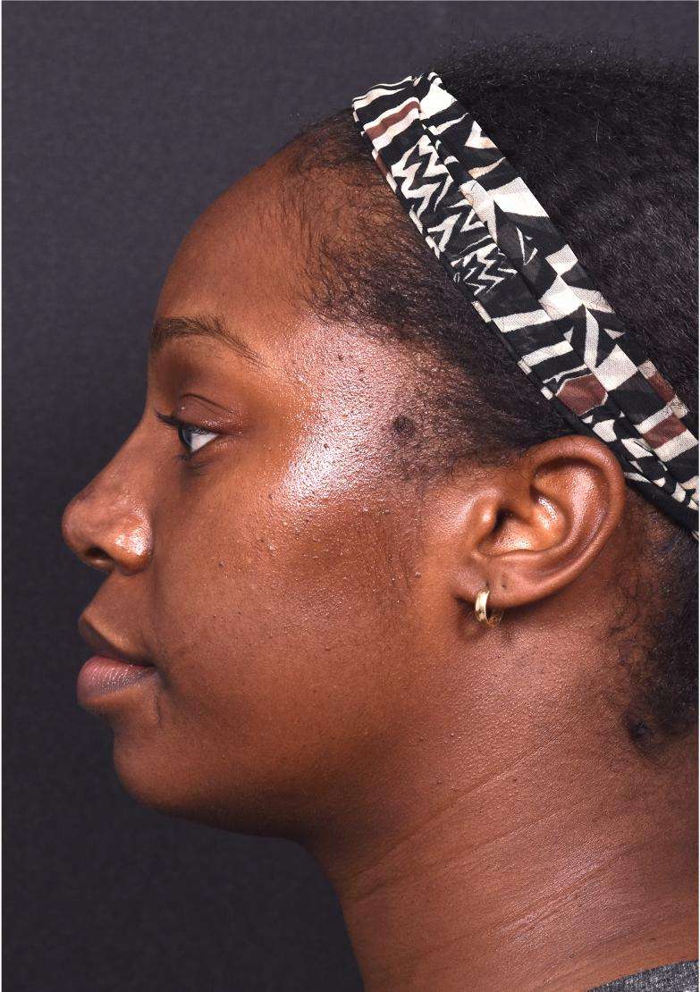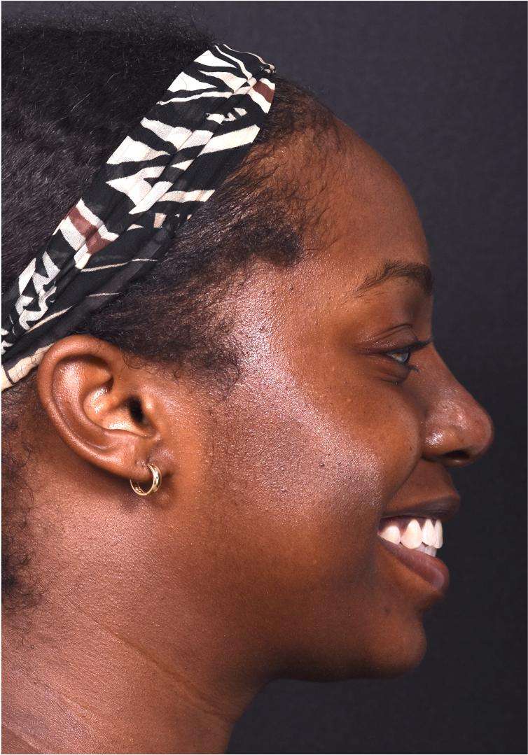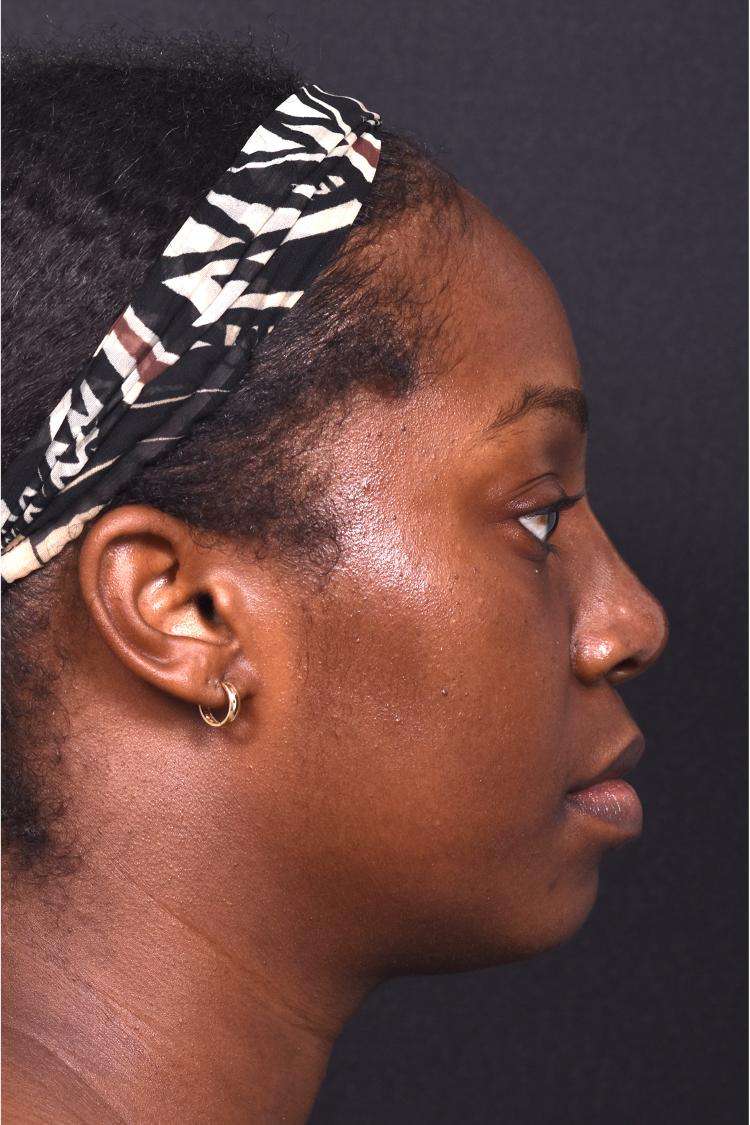 This 29-year-old woman wanted to improve the definition of her nose without surgery. Facial Plastic Surgeon Dr. Inessa Fishman treated her with a non-surgical or “liquid” rhinoplasty, using dermal fillers to add height to her nasal bridge and refine the nasal tip. She is shown immediately after treatment.