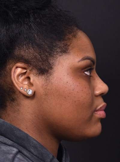 This 26-year-old woman wanted to add subtle height and definition to her nose bridge, but was hesitant to undergo surgery.  Facial plastic surgeon Dr. Inessa Fishman treated her with a “liquid” or nonsurgical rhinoplasty, adding contour to her nose with injectable dermal filler.  The patient is shown 2 weeks after treatment, with a beautiful and natural result which is expected to last about a year after treatment.