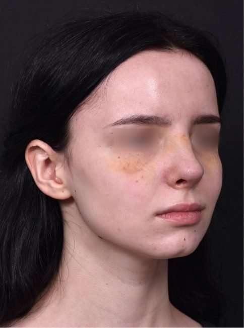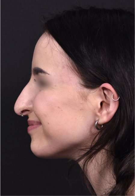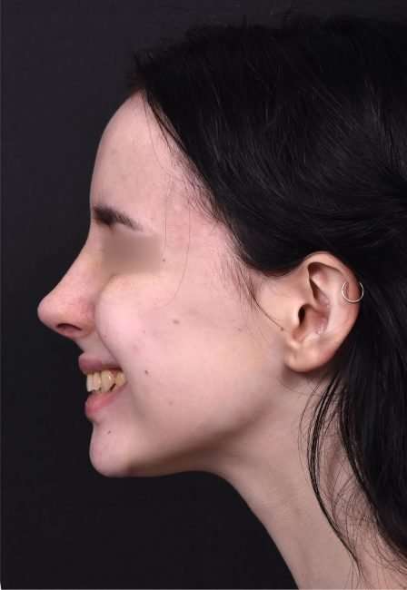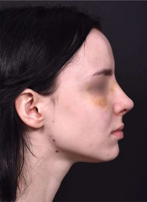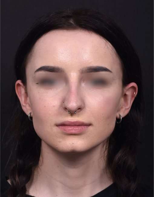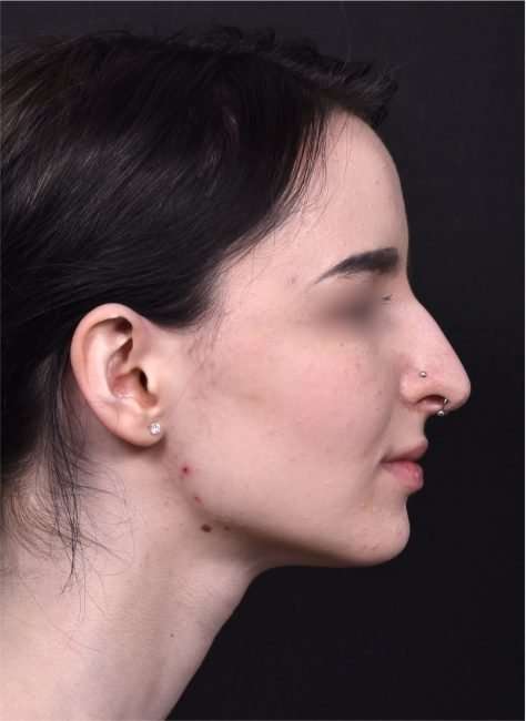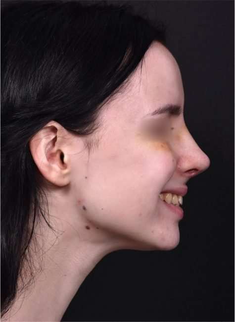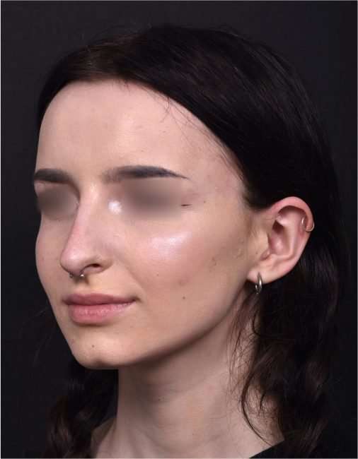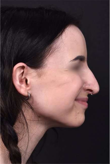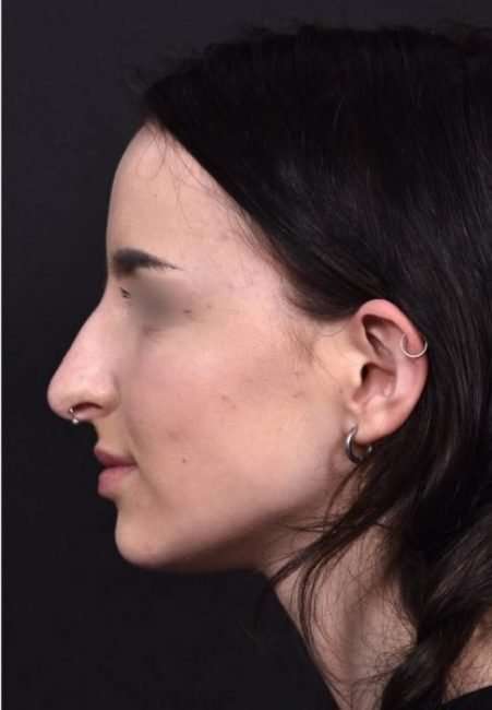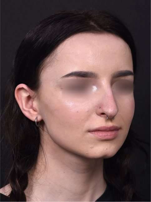 This 19-year-old woman was bothered by her nose’s bridge bump and a tip which drooped with smiling. She had tried a non-surgical rhinoplasty in the past, and felt it did not give the aesthetic results she was seeking. This patient decided to proceed with surgical nose reshaping; and facial plastic surgeon Dr. Inessa Fishman performed her surgery using preservation rhinoplasty techniques, which provide a more natural-appearing result and a shorter recovery. The patient is shown 1 week after nose surgery, with a great result and mild resolving swelling. She is thrilled with her surgery outcome, and her nose will continue to refine in shape over the next few months.
